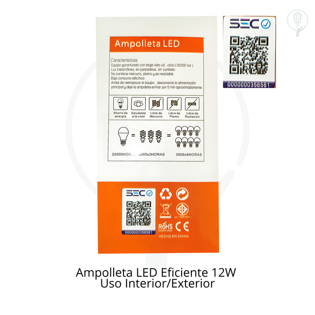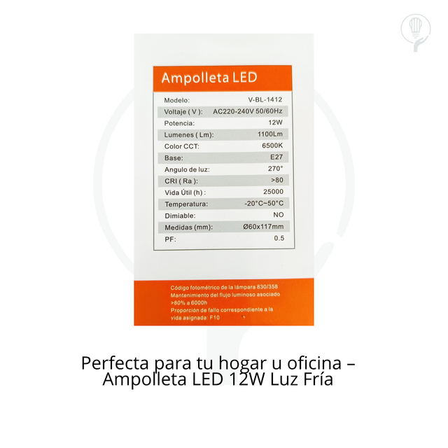 Ampolleta led 12w 6500 k 1100 Lm base E27 No Dimeable con Certificación SEC Ver más detalles