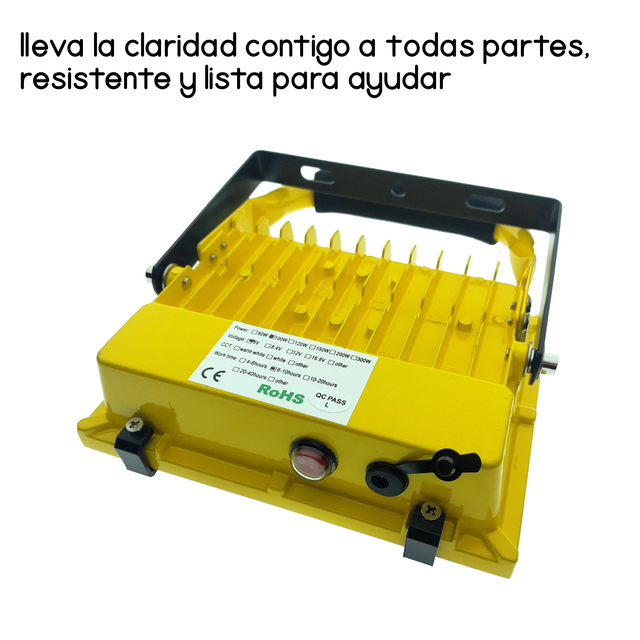 Este foco de emergencia led recargable es su amigo confiable cuando enfrenta un corte de energía inesperado o necesita luz rápida para viajes al aire libre en aventuras de campamento o viajes de pesca. ofrece un brillo fuerte de 100w y un haz estable. funciona con voltaje 12v - 220v con resistencia al agua ip65. su batería dura aproximadamente de 5 a 8 horas y ofrece una luz de trabajo portátil para cada situación.