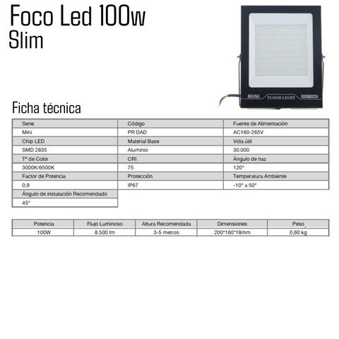 Foco Proyector Mini 100 w, Foco led proyector 100w, 220-240 volt., Slim, medidas: 1,5cm x 16cm x 29cm, IP67 impermeable uso interior exterior Ver más detalles